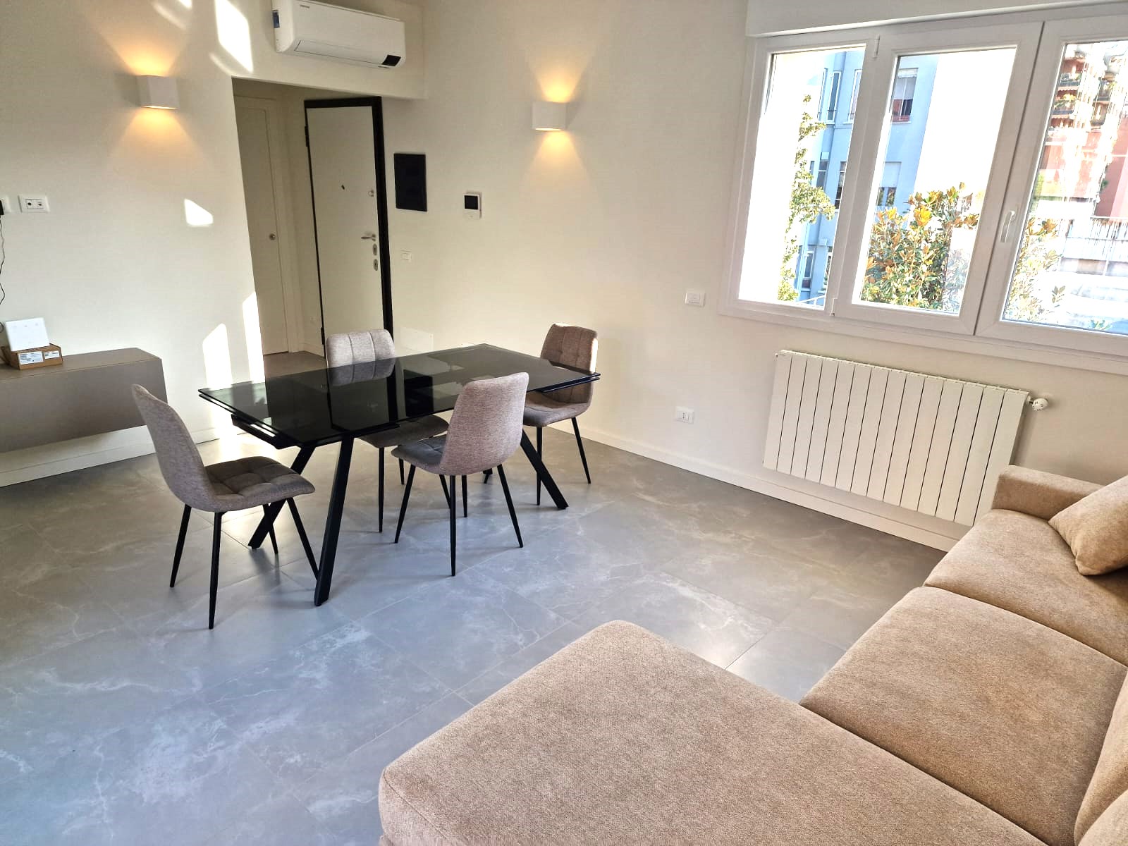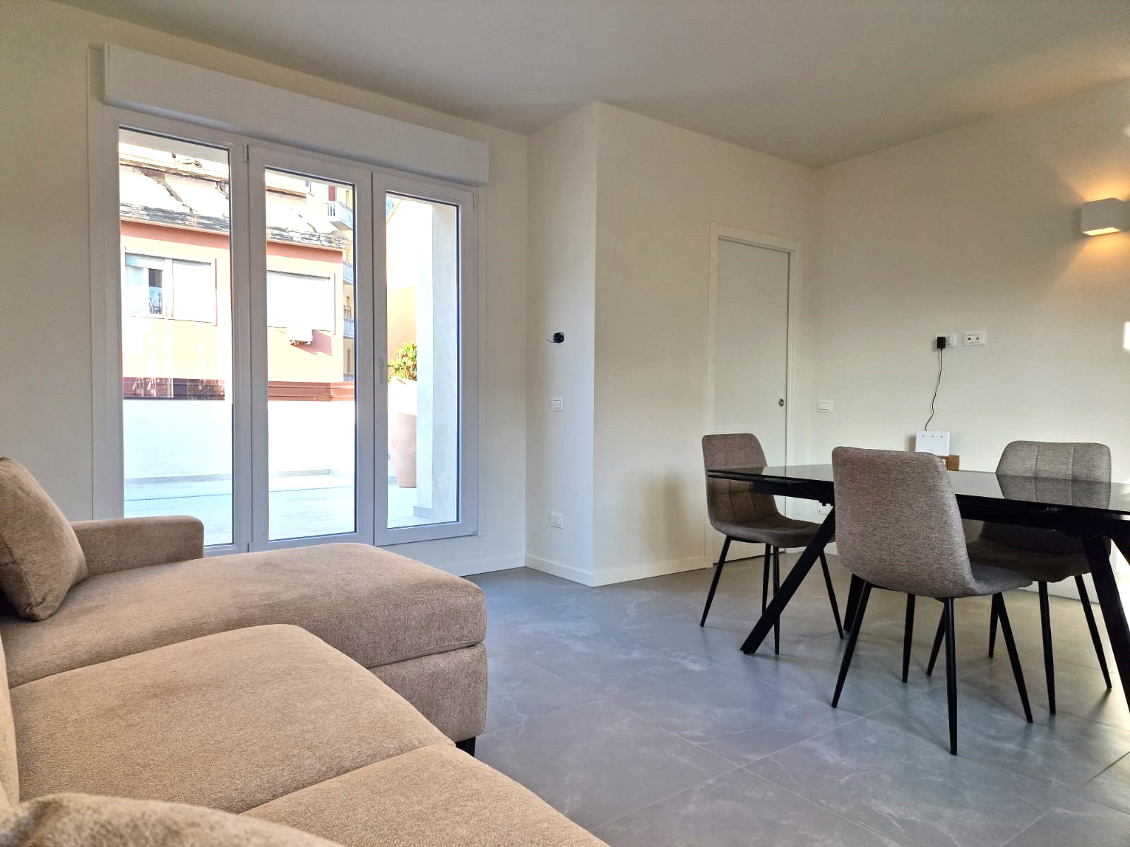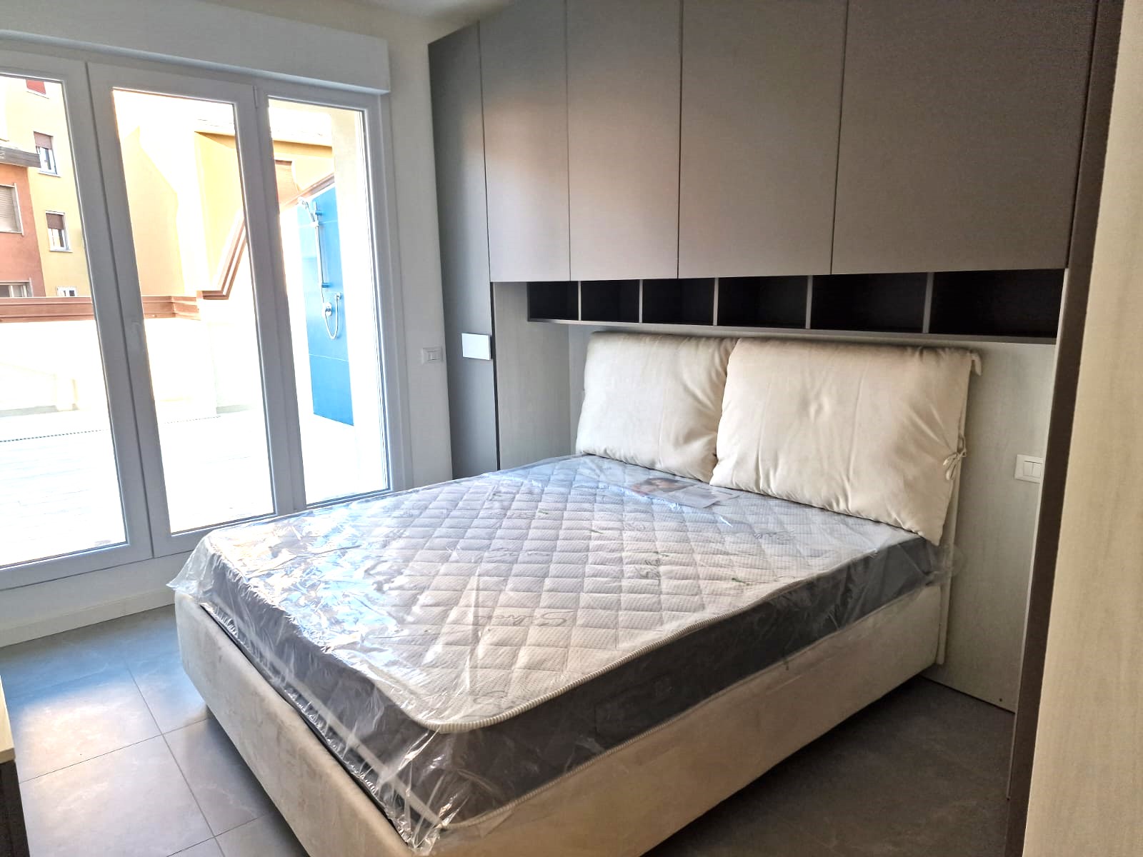 Composto da: ingresso, soggiorno con accesso al terrazzo arredato con divano e grande tavolo con 4 sedie, cucinotto separato completo di tutti gli elettrodomestici, lavastoviglie e fuochi ad induzione, camera matrimoniale con entrata diretta al terrazzo e bagno con doppio accesso e doccia in cristallo. Ristrutturato ed arredato a nuovo con arredi su misura.