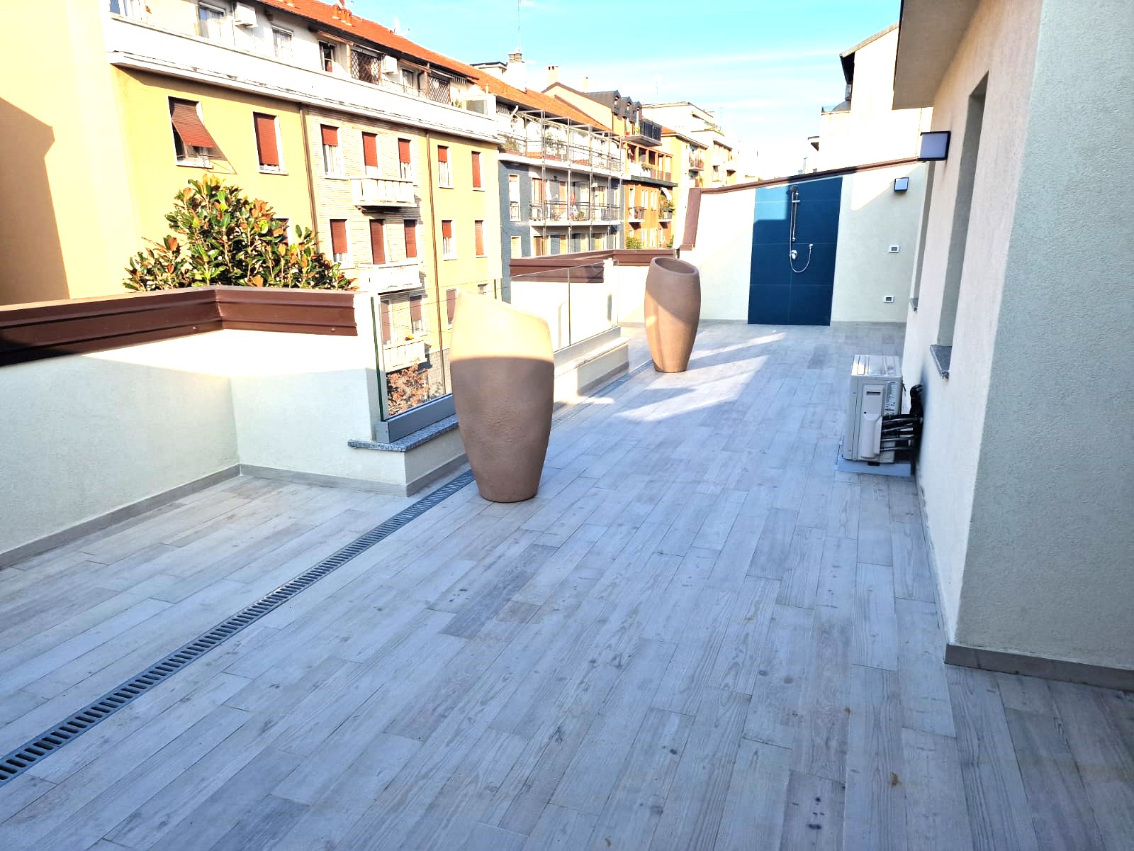 In stabile con ascensore che arriva direttamente in appartamento e portineria virtuale proponiamo in residenza appena ristrutturata BILOCALE con AMPIO TERRAZZO di 60 mq con doccia.
