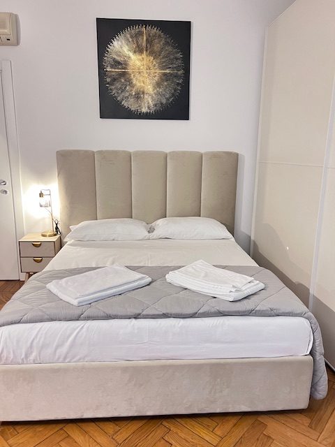 Composto da: ingresso, cucina abitabile completa di tutti gli elettrodomestici e lavastoviglie con accesso diretto al terrazzo, due camere con letto matrimoniale e bagno in marmo con doccia e sanitari di ultima generazione.